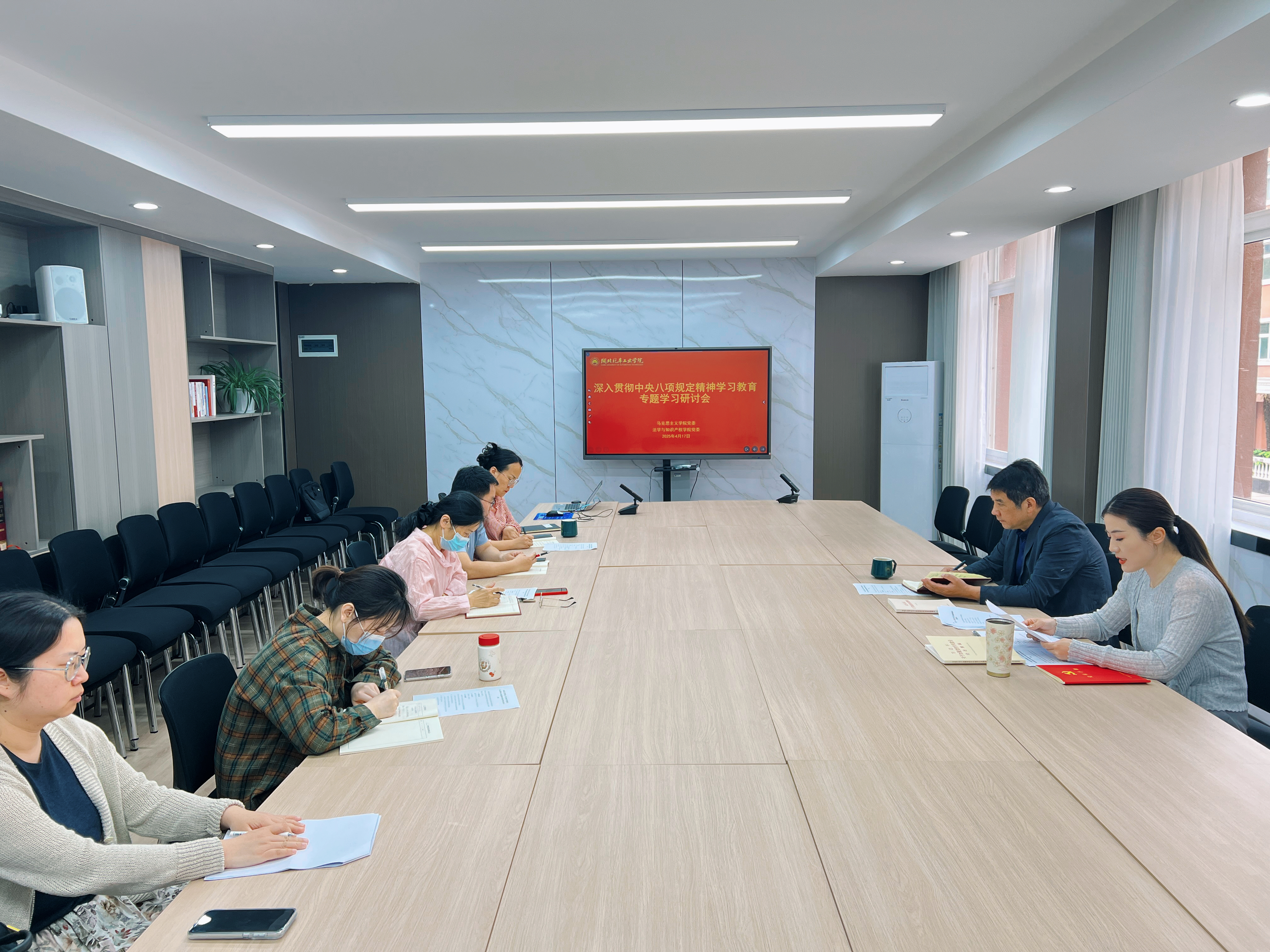 为积极响应校组织部学习教育工作提示相关要求,扎实推进学院党委深入贯彻中央八项规定精神学习教育计划,4 月 17 日上午,beat365在线唯一官网党委、法学与知识产权学院党委在学院 3206 会议室举办了专题学习研讨会。学院党委委员、各支部书记参会,会议由副书记李童主持。