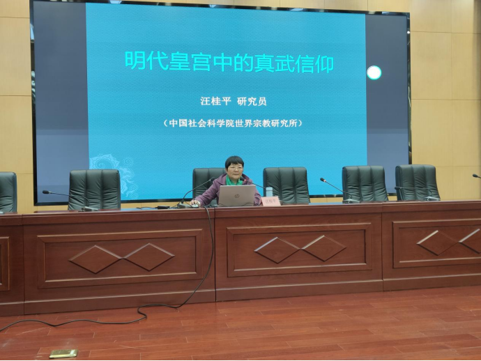 12月1日,中国社会科学院世界宗教所研究员汪桂平应邀为beat365师生作题为“明代皇宫中的真武信仰”的专题讲座。讲座由人文学院学院副院长安军主持,师生代表130余人到场聆听。