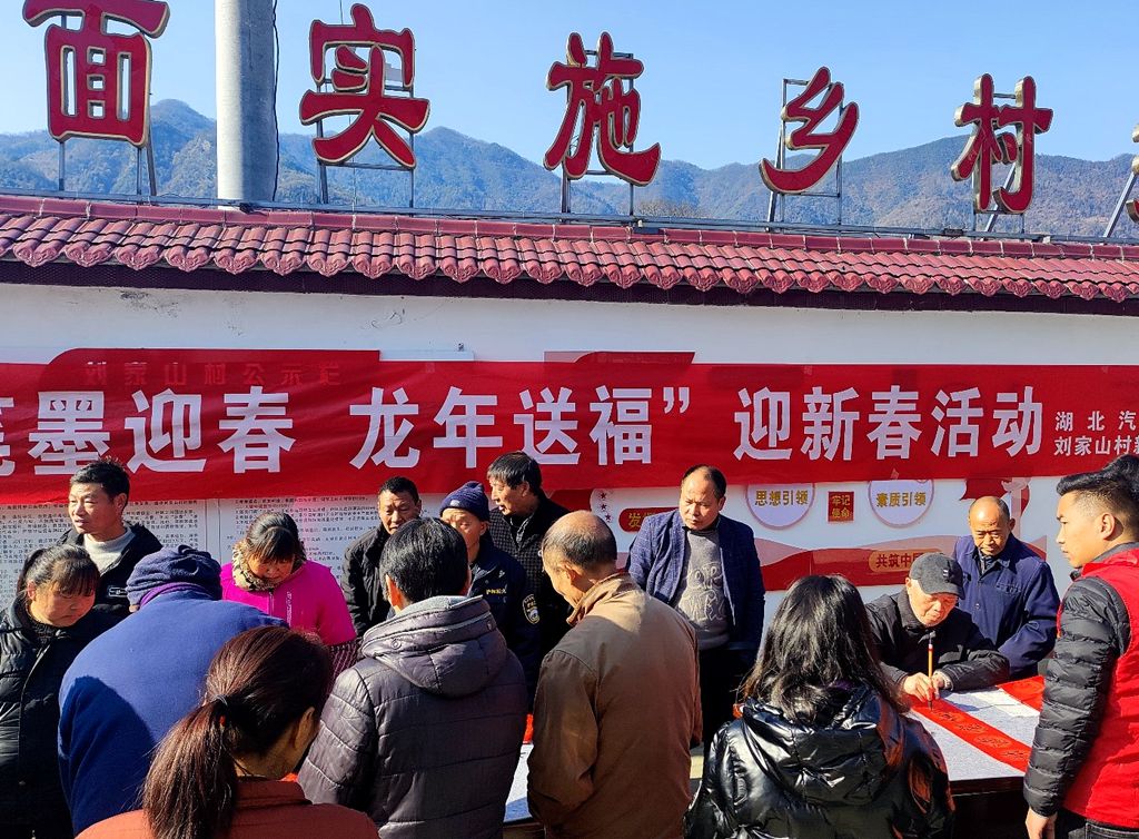 在竹山县城关镇刘家山村,beat365在线唯一官网邀请了湖北省百名书法家、原十堰市诗书画研究会副会长、十堰市楹联学会顾问曾光洪、曾炜为村民现场书写赠送对联,为即将迎来的新春佳节增添浓厚的文化气息,得到群众的热烈欢迎。